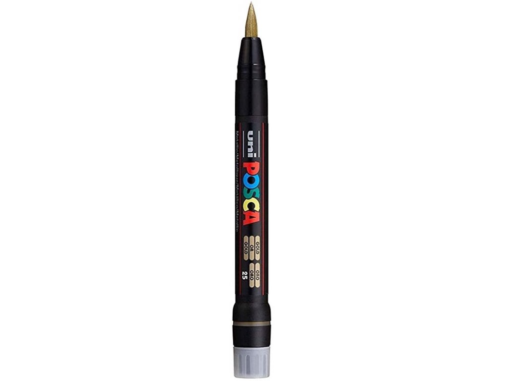 UNI Posca PCF-350 brush japonského výrobce UNI. Fix se štětsovým hrotem šíře 1-10 mm, dle tlaku na hrot. Náplň je akrylová, tedy na vodní bázi. Po zaschnutí je pigment vodě i povětrnostním vlivům odolný a je tedy ho možné použít jak v interiéru, tak exteriéru. Skvělé využití mají tyto fixy při tvorbě na papír, stopa může být trvalá na terakotě (po fixaci pečením na 220 stupňů 45 min), porcelán a sklo (po fixaci pečením na 160 stupňů 45 min a následným přelakováním čirým lakem), textil (po zažehlení z rubové strany), kov, plast, dřevo, plasty a další materiály. Akrylový lak má velmi dobré krycí vlastnosti s matným výsledným efektem. Barva je netoxická a tedy vhodná i na bodypainting. Díky štětcovému hrotu je možné docílit elegantních tahů a mimo malbu je fix vhodný i na krasopis a kaligraffi.