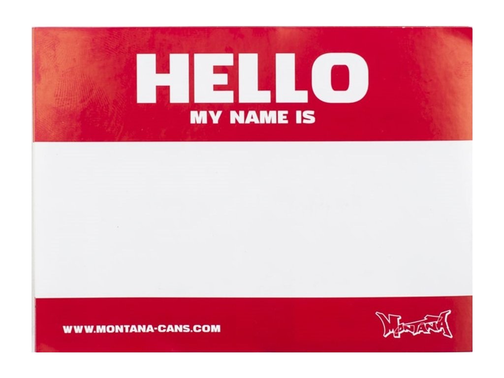 Kultovní samolepky "Hello my name is..." v balení 10 ks (5ks modrá+5ks červená). Samolepka extrémního formátu je připravena jak pro popsání fixem, tak sprejem. Nálepky lze koupit i samostatně.