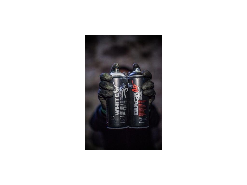 Řada Black německého výrobce Montana je se středně vysokým tlakem. Black OUT je černá barva kombinace nitro-kombinační báze a térové báze, která je vhodná pro překrývání chromu a barev s metalickým efektem (stříbrná, zlatá, bronzová atd.). Barva má extrémně rychlé schnutí a překrývá nezaschlý chrom i na neporézních materiálech při zachování syté černé stopy bez reakce s chromem.