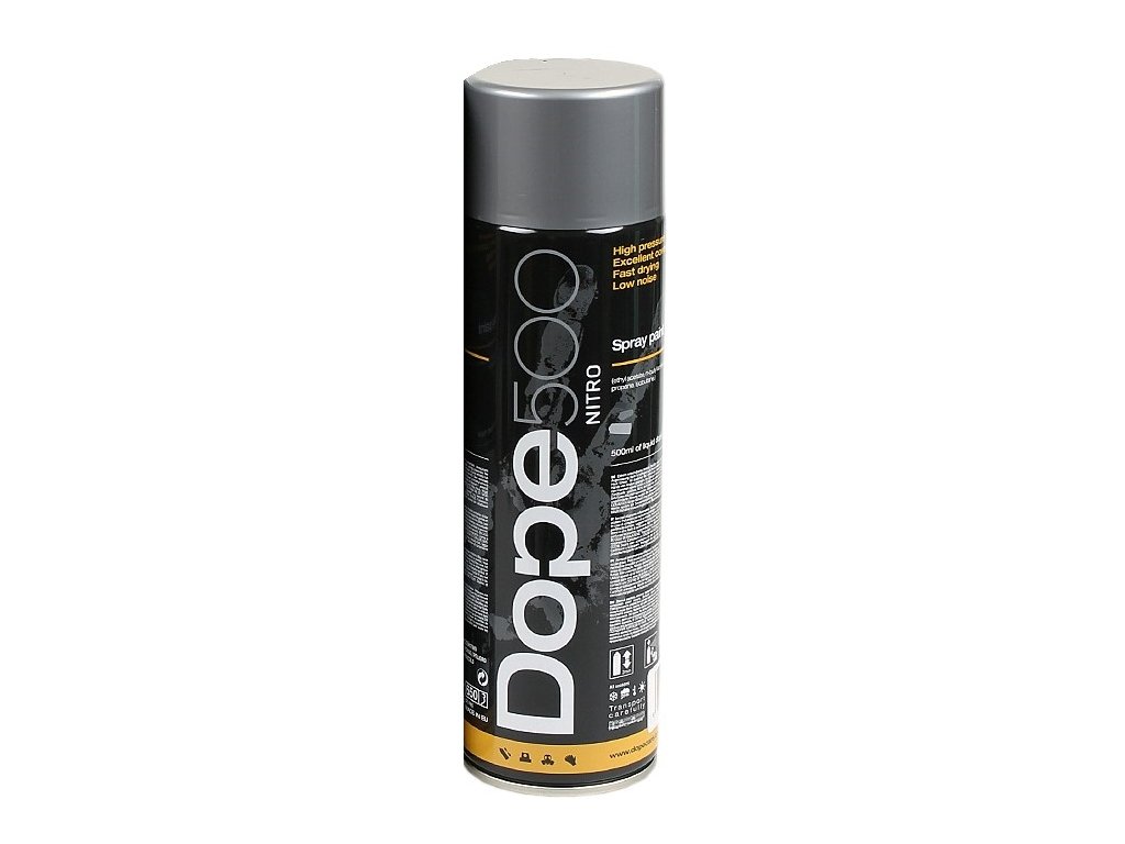 Stříbrná barva řady Nitro polského výrobce Dope. Díky nízkému tlaku je možné dosáhnout velice precizních linek. Lze použít na plast, dřevo, kov, papír, beton, kůže a většinu dalších materiálů.