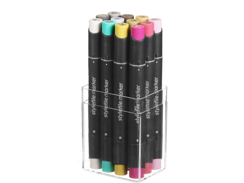 Sada 12 ks oboustranných fixů na alkoholové bázi, určených pro použití na papír. Fixy mají z jedné strany ostrý hrot a z druhé strany hrot seříznutý a jsou vhodné pro ilustrace, design a další využití. Fixy Stylefile marker jsou výjimečné svojí praktičností díky systému oboustranného hrotu.