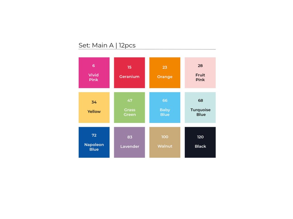 Sada oboustranných fixů obsahující 12 barev. Fix má na jednom konci špičatý hrot a na druhém konci zkosený hrot. Tato kombinace zaručuje pohodlí při práci, kdy je možné jedním nástrojem vytvářet naprosto odlišné stopy a vytvářet tak zajímvé ilustrace. Fixy jsou na alkoholové bázi a vhodné pro práce na papír. Dodávány jsou v plastovém, uzaviratelném obalu.