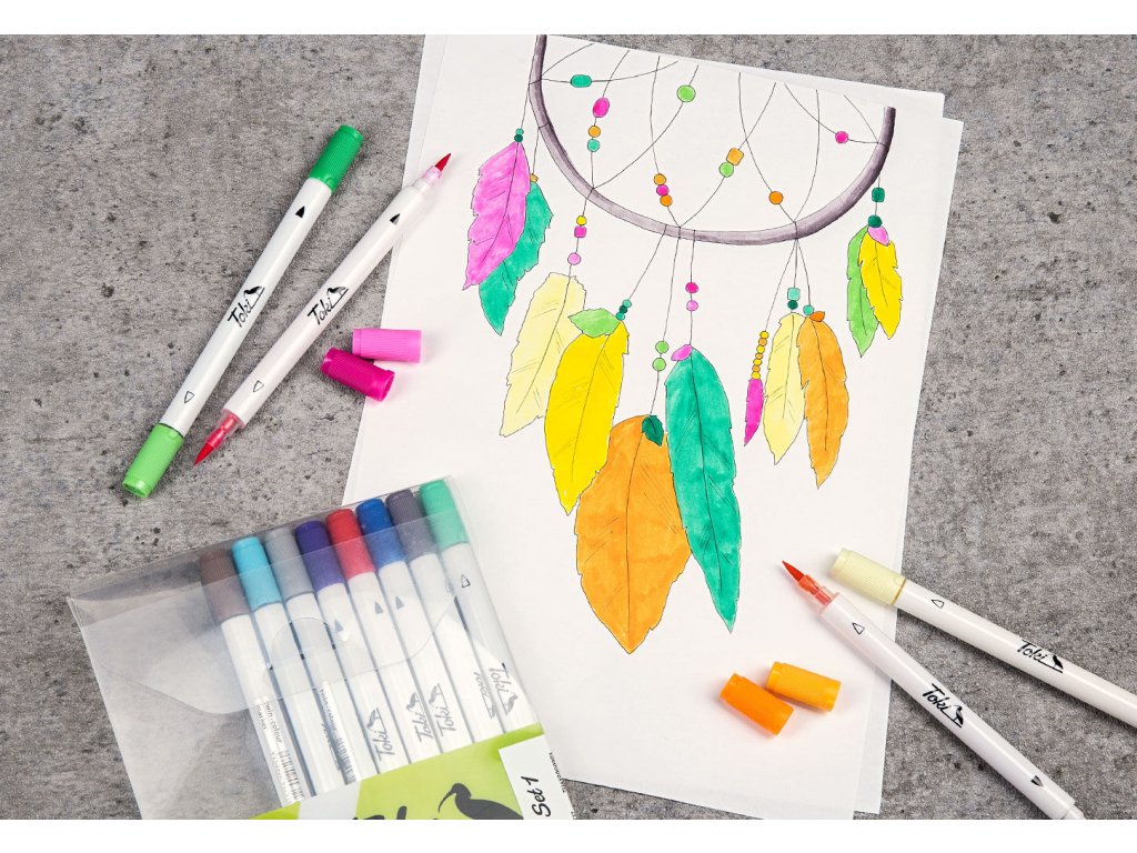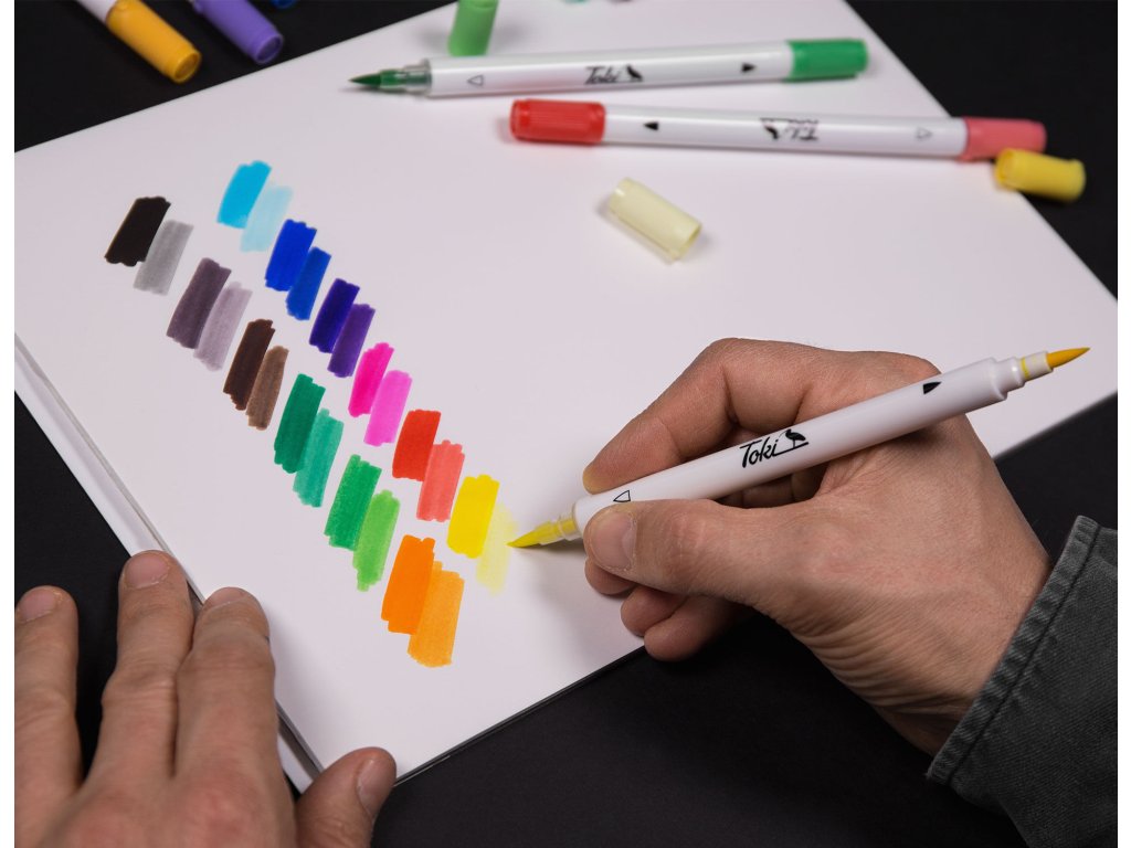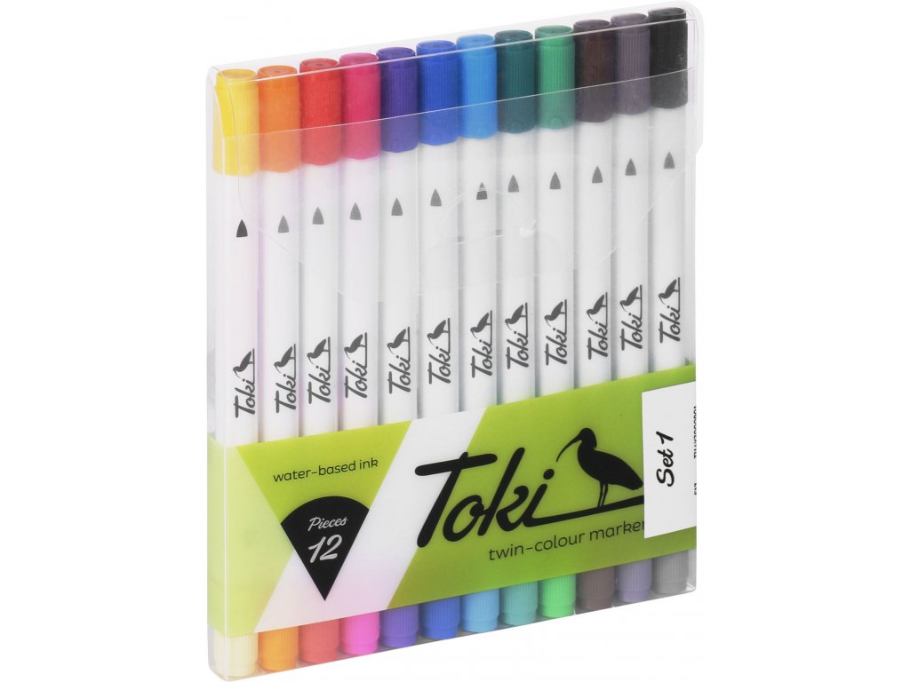 Sada oboustranných fixů obsahující 12 barev. Fix má na obou koncích štětcový hrot, ale každá strana fixu má jiný barevný odstín. Tato kombinace zaručuje pohodlí při práci, kdy je možné jedním nástrojem vytvářet přechody, či dvě různě barevné stopy. Fixy jsou na vodní bázi a vhodné pro práce na papír. Dodávány jsou v plastovém, uzaviratelném obalu.