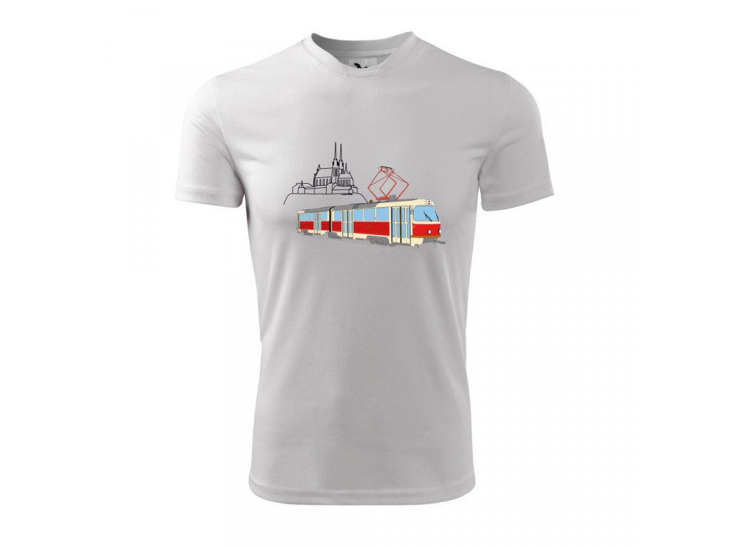 Tričko se sublimačním potiskem s motivem vozů K2 brněnských tramvají.