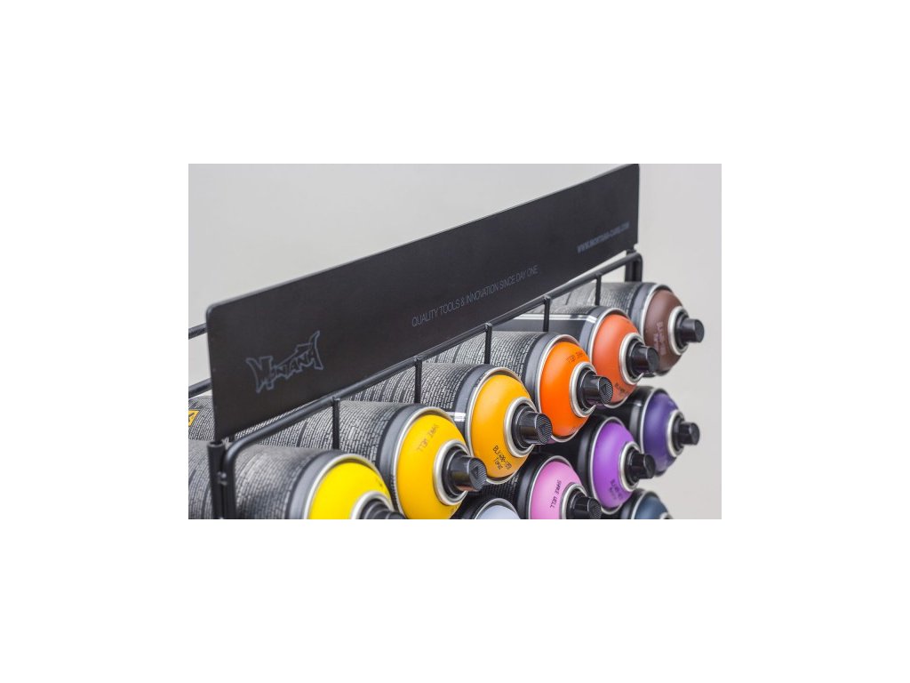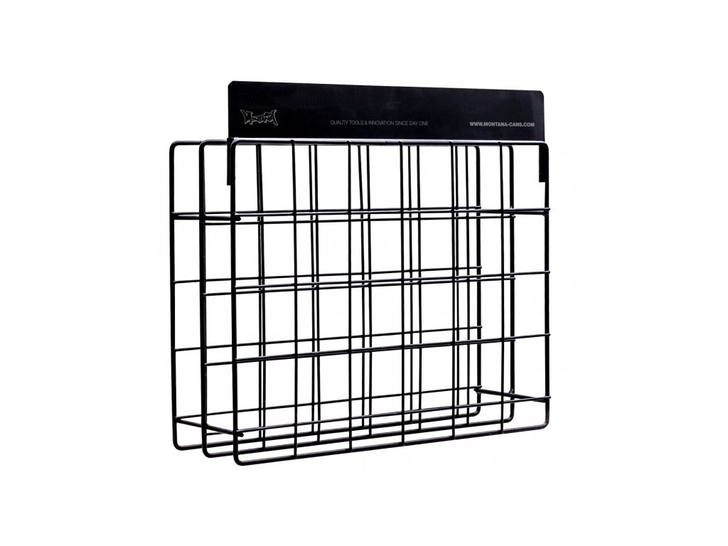 Stojan na spreje Montana s kapacitou 24 ks sprejů objemu 400 ml. Stojan je vyroben z kovu s černým, matným lakem. Díky tomu regálu budete mít dokonalý přehled o Vašich sprejích doma, v garáži, či ateliéru. Stojan je možné použít rovněž na fixy, náplně a další potřeby. Velikost regálu je 45x13x34,5 cm, přičemž vrchní čelo je odnímatelné.