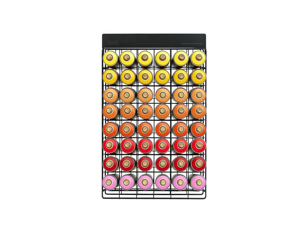 Stojan na spreje Montana s kapacitou 48 ks sprejů objemu 400 ml. Stojan je vyroben z kovu s černým, matným lakem. Díky tomu regálu budete mít dokonalý přehled o Vašich sprejích doma, v garáži, či ateliéru. Stojan je možné použít rovněž na fixy, náplně a další potřeby. Velikost regálu je 72x13x45 cm, přičemž vrchní čelo je odnímatelné.