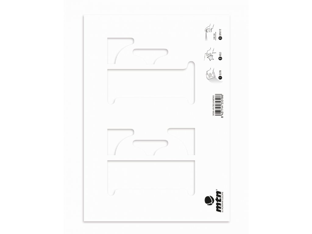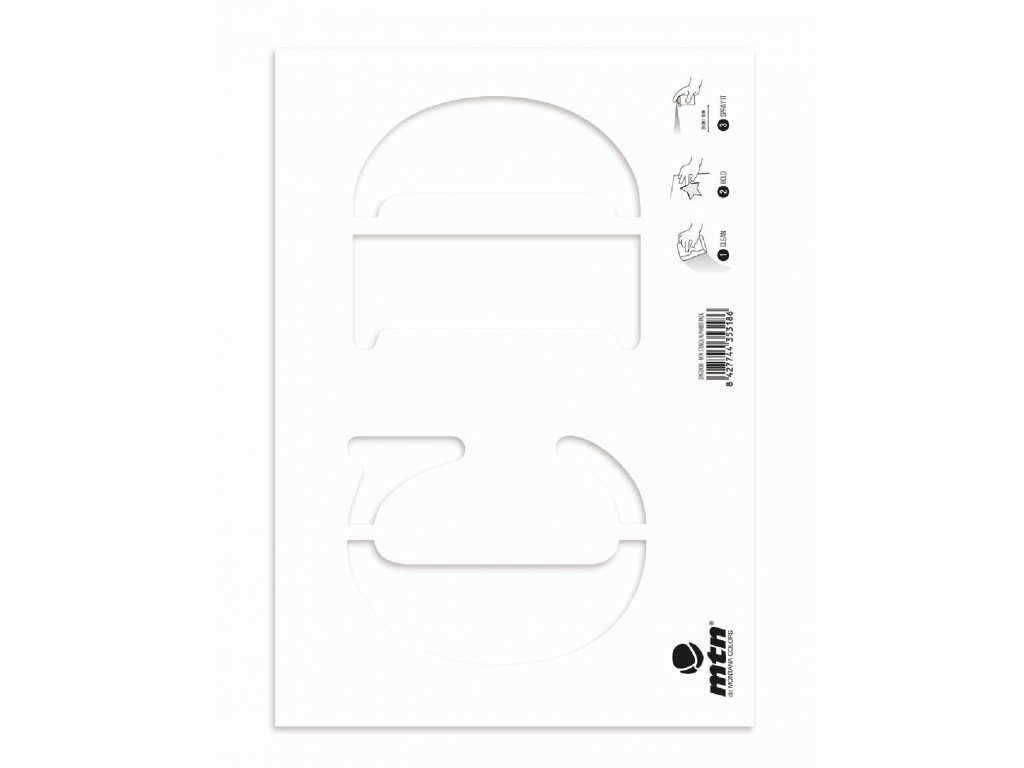 Šablona z pevného lepenky s vyřezanou abecedou. Šablony jsou opakovaně použitelné a poskytují velkou odolnost a trvanlivost. Šablona je vhodná na přestřik sprejem i pro další techniky šablonování; je lehká, čili se dá lehce zafixovat na potřebné pozici a zároveň je dostatečně odolná.