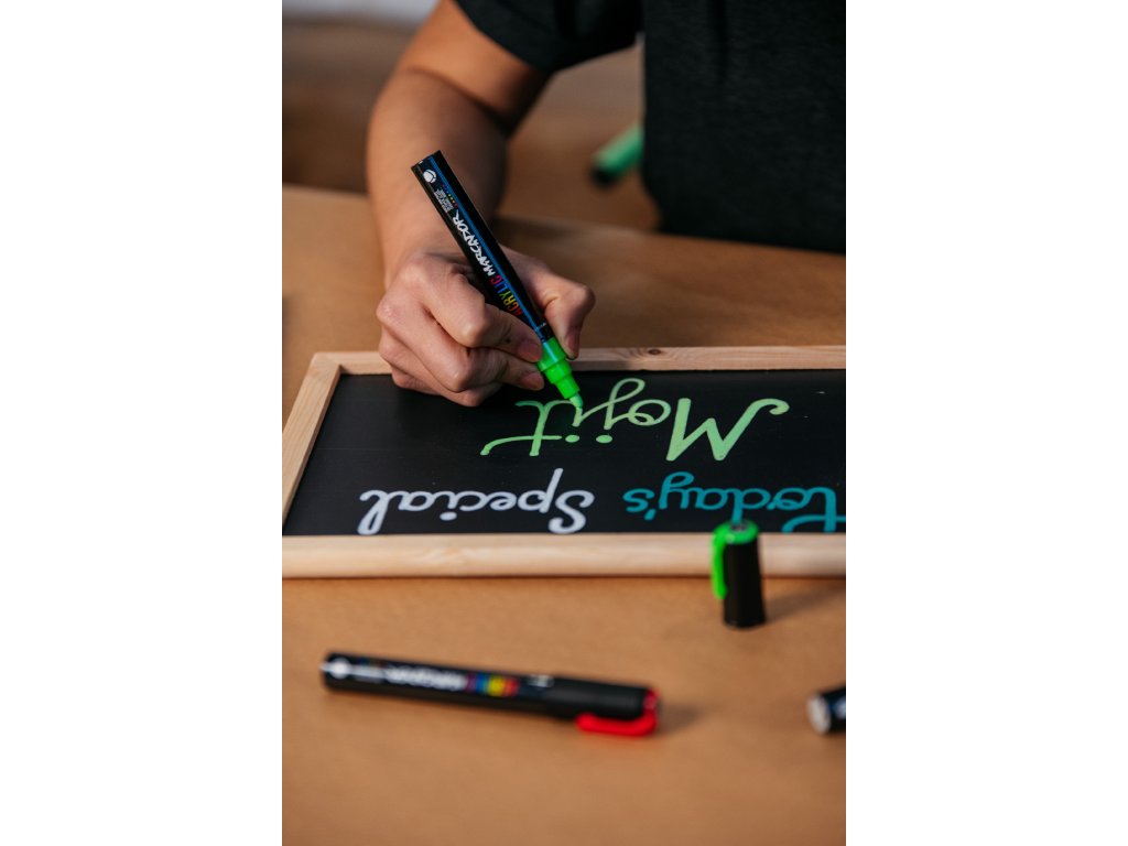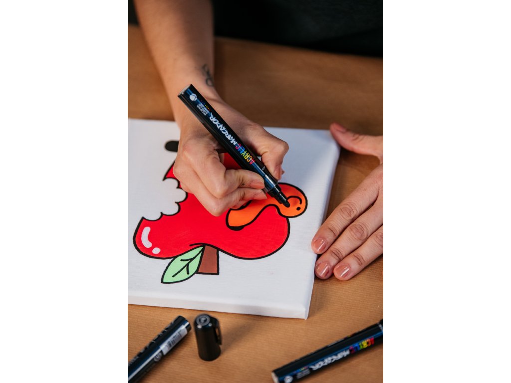 Sada obsahuje akrylové fixy španělského výrobce MTN se zkoseným hrotem 6 mm. Je tak vhodný na malby a práce většího formátu, či kaligrafii. Náplň fixu je na vodní bázi s perfektním krytím na všech materiálech, jako kov, plast, porcelán, dřevo, plátno, kůže, papír, sklo a další. Pigment je silně koncentrovaný a po svém zaschnutí je barva vodě odolná. Náplň je bez zápachu a bez rozpouštědel a je tedy vhodná i pro práci s dětmi. Fix je možné použít v interiéru i exteriéru a v sadě je 8 základních odstínů. Náplň lze opakovaně doplňovat, stejně tak jako je možné vyměnit hrot.