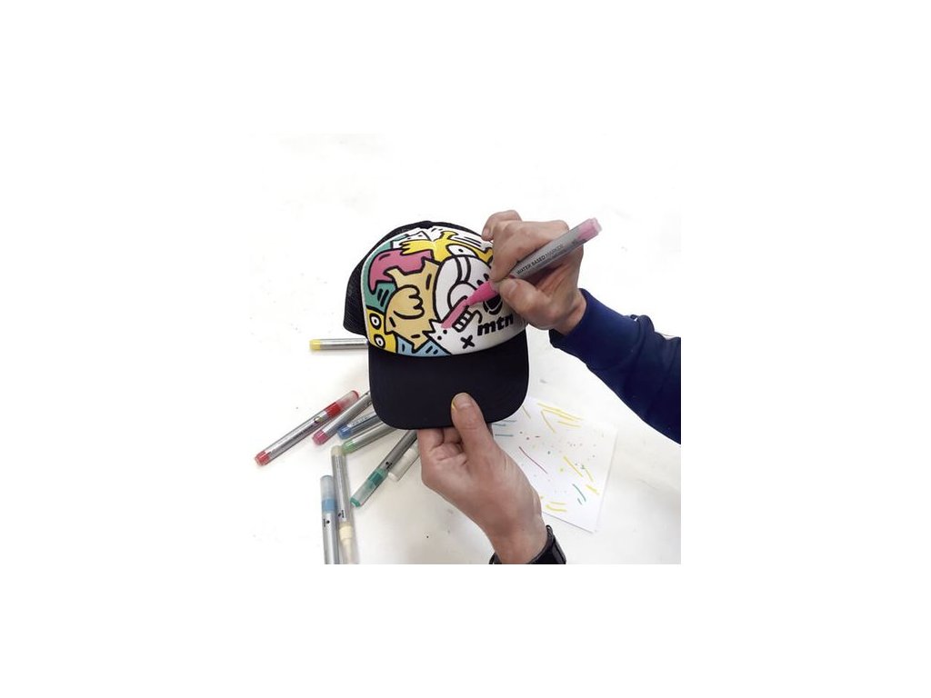 Sada obsahuje akrylové fixy španělského výrobce MTN s kulatým hrotem 5 mm. Fix je vhodný na malby a práce menšího formátu, zdobení a podobně. Náplň fixu je na vodní bázi s perfektním krytím na všech materiálech, jako kov, plast, porcelán, dřevo, plátno, kůže, papír, sklo a další. Pigment je silně koncentrovaný a po svém zachnutí je barva vodě odolná. Náplň je bez zápachu a bez rozpouštědel a je tedy vhodná i pro práci s dětmi. Fix je možné použít v interiéru i exteriéru a v nabídce je 20 kontrastních odstínů, včetně stříbrné a zlaté. Náplň lze opakovaně doplňovat, stejně tak jako je možné vyměnit hrot. Odstíny této řady fixů jsou stejné jako odstíny sprejů MTN Water based 300 ml a je tedy možné je kombinovat při práci aniž by byl ve výsledku znatelný rozdíl barev.