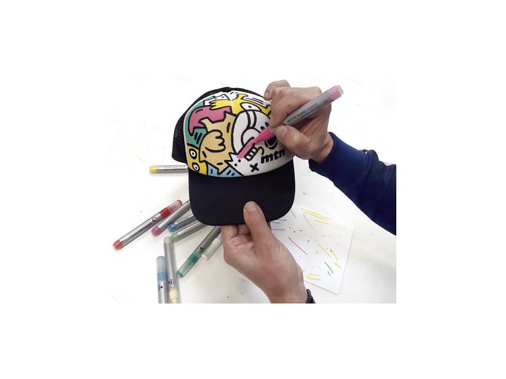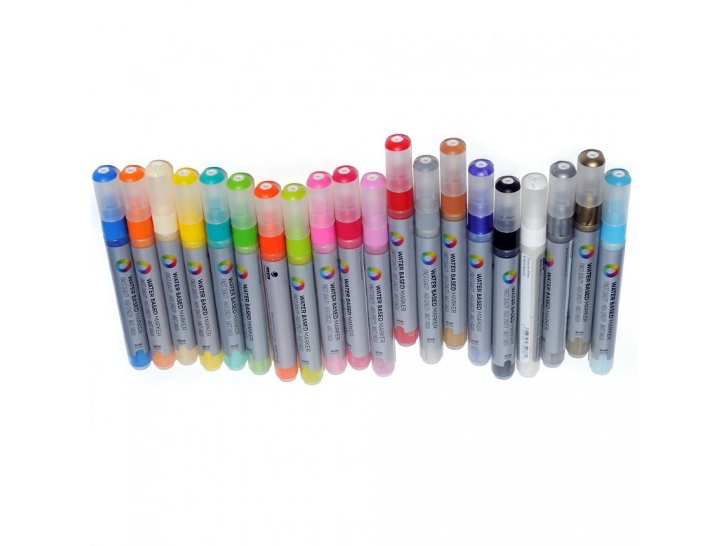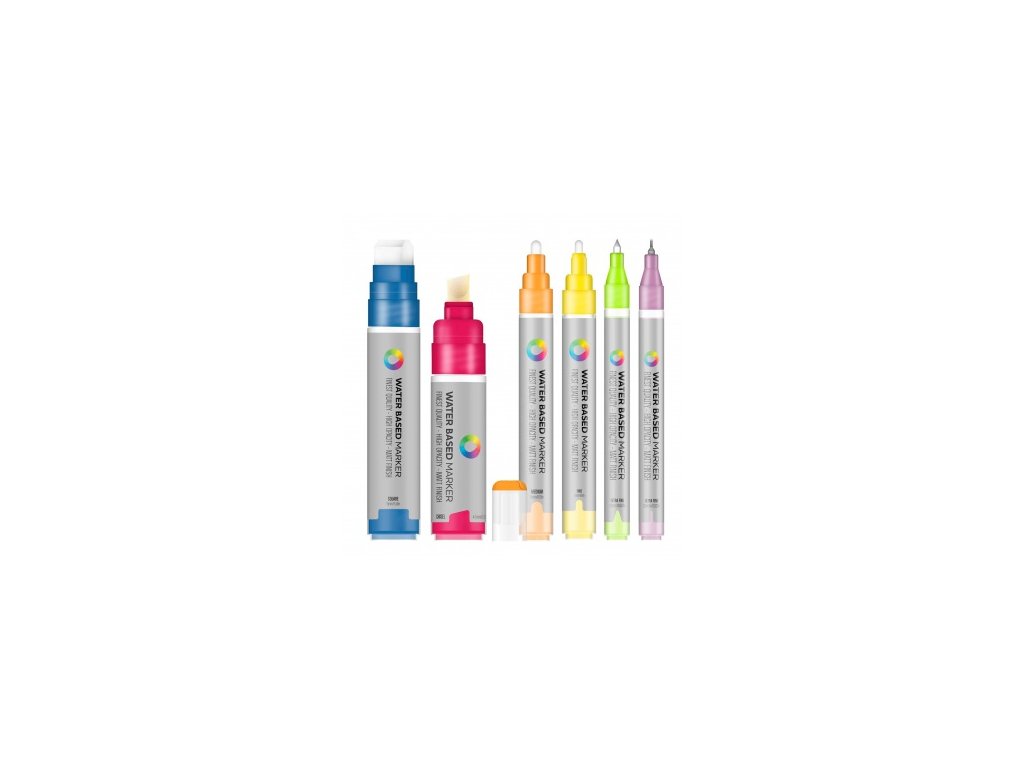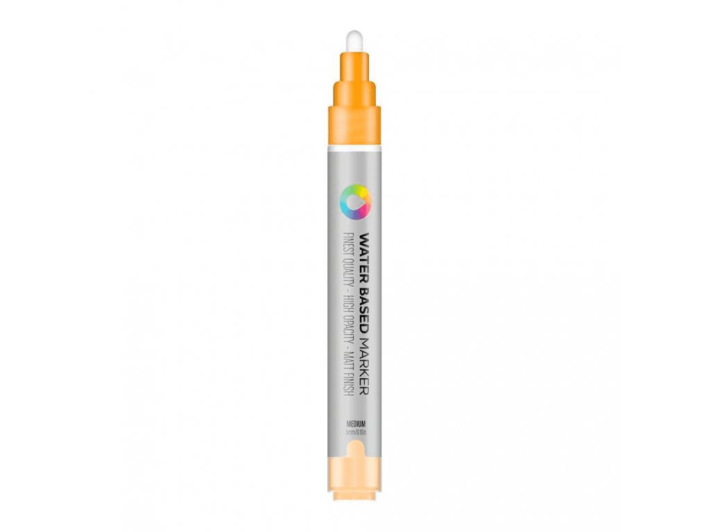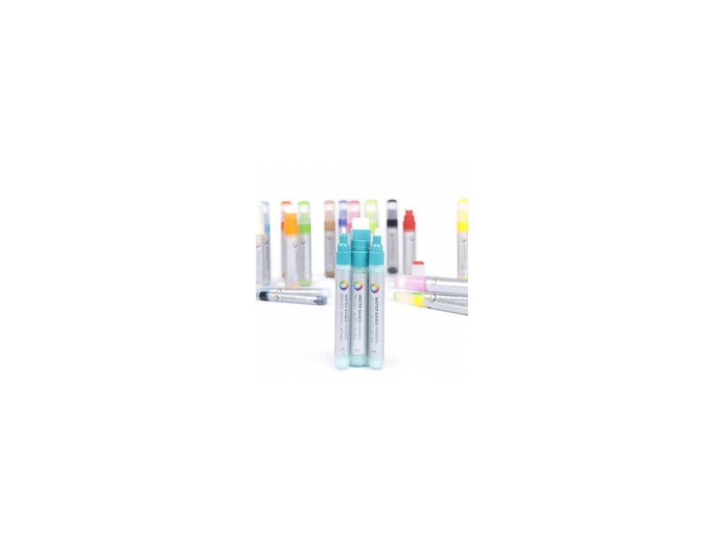 Akrylový fix španělského výrobce MTN s kulatým hrotem 5 mm. Díky této šíři hrotu je možné fix použít jak na vyplnění menších ploch, ale i na výrazné tahy a kontury. Náplň fixu je na vodní bázi s perfektním krytím na všech materiálech, jako kov, plast, porcelán, dřevo, plátno, kůže, papír, sklo a další. Pigment je silně koncentrovaný a po svém zachnutí je barva vodě odolná. Náplň je bez zápachu a bez rozpouštědel a je tedy vhodná i pro práci s dětmi. Fix je možné použít v interiéru i exteriéru a v nabídce je 20 kontrastních odstínů, včetně stříbrné a zlaté. Náplň lze opakovaně doplňovat, stejně tak jako je možné vyměnit hrot. Odstíny této řady fixů jsou stejné jako odstíny sprejů MTN Water based 300 ml a je tedy možné je kombinovat při práci aniž by byl ve výsledku znatelný rozdíl barev.