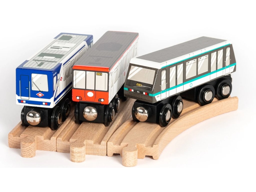 Vlaky jsou ideální pro děti od 3 let a starší, jsou vyrobeny z udržitelného dřeva a mají pevné, magnetizované spoje mezi vagóny. To jim umožňuje propojit více vláčků navzájem. Mini Metro je kompatibilní s většinou podobných kolejnicových systémů, což umožňuje bezproblémovou integraci s vaší stávající sbírkou.